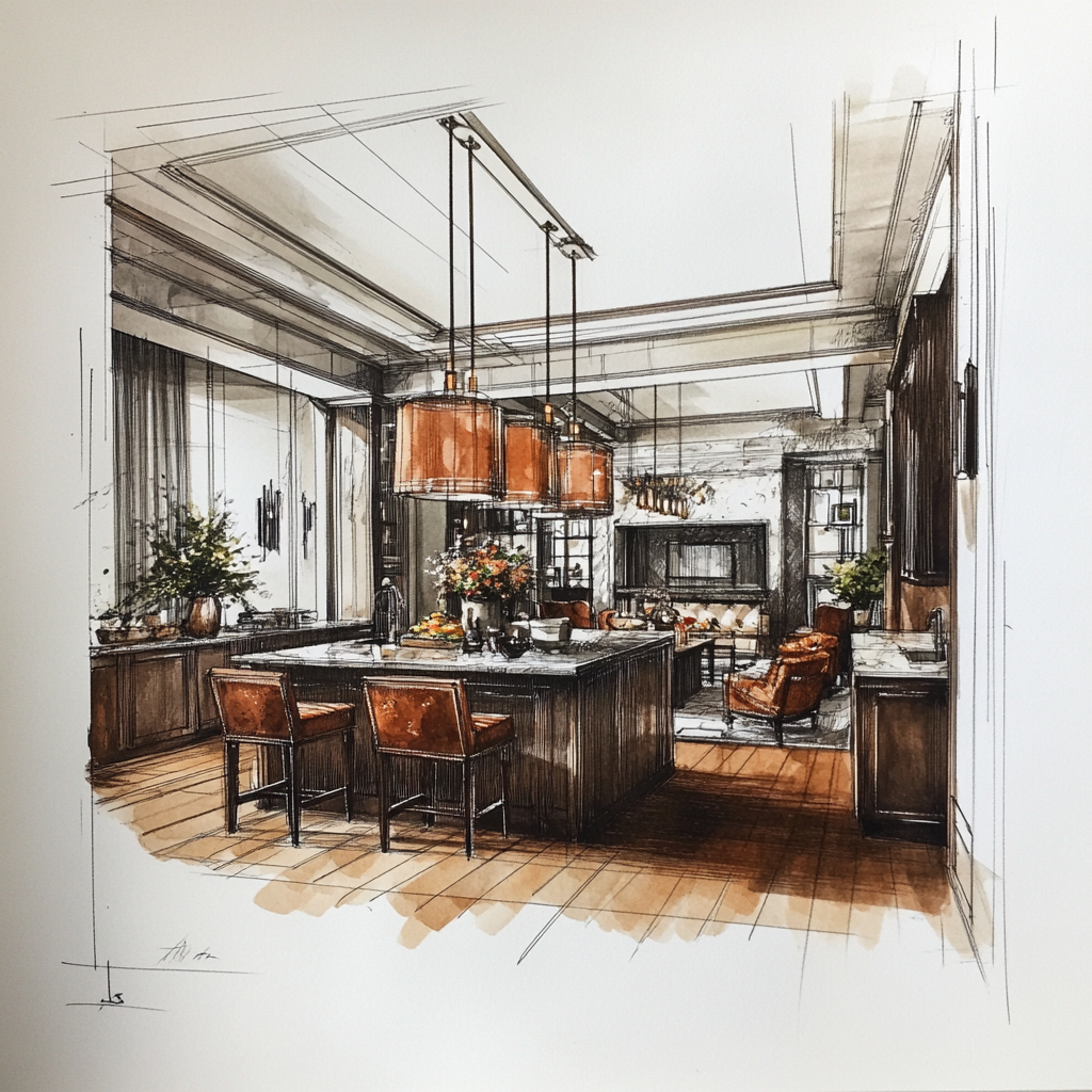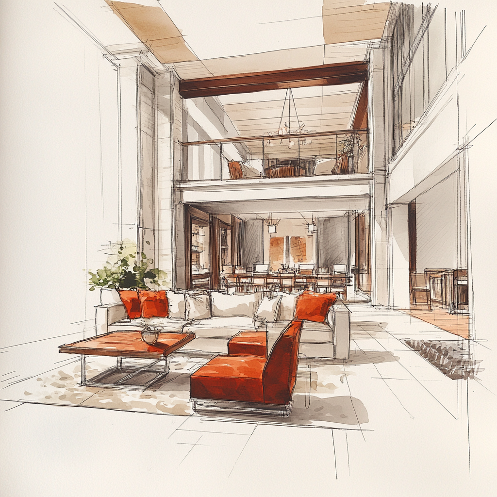 Sketches are where your ideas start to take shape. At Serac Studios, our hand-drawn and digital sketches give form to the concepts born from our initial brainstorming. These early drafts capture the flow, layout, and key elements of your space, offering a visual roadmap for the design ahead. With each line and curve, we refine your vision, ensuring every detail aligns with your style and needs.